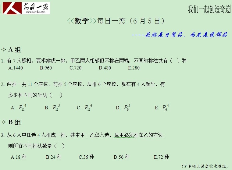【太奇MBA 2014年6月5日】 MBA数学每日一练